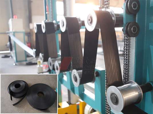 纤维柔性打包带生产线(聚酯纤维带设备)是基于我司多年PET/PP 打包带生产技术基础上,自主开发的一种新型打包带设备,可以根据用户要求,一出一,一出二,带宽:9-100mm, 产量 200KG/H-500KG/H 可选。6年多来已成功销往除中国本地外,出口到加拿大,沙特,印度,泰国,南非,乌兹别克斯坦,土耳其,阿联酋等国家,应用领域也越来越广泛,如包装行业土工领域等,甚至在多个领域取代传统钢带,深受客户青睐。