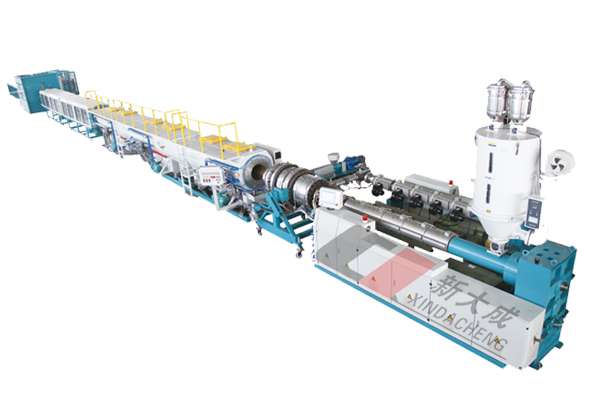 最近公司出口一批 315-630mm管径的大口径高密度聚乙烯给水燃气管材挤出生产线,该批生产线是我公司采用欧洲先进技术,经消化吸收、成功研制的新型管材生产线。我公司依据多年的设计生产经验,结合国内外实际情况,开发研制的完整的大口径PE管材生产线全自动生产设备,从挤出机开始包括所有的自动化单元及周边设备,整个生产线实现从进料到成品的全线自动控制。