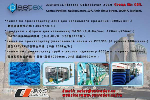 k8凯发天生赢家一触即发人生公司将于2019年10月9日-11日参加第十届乌兹别克斯坦国际橡塑展 Plastex Uzbekistan 2019,展馆名称: Central Pavilion, UzExpoCentre,展馆地址:107, Amir Timur Street, 100047, Tashkent, 展位号:C84. 公司产品有滴灌管生产线,滴头制品及模具,打包带生产线,克拉管生产线和PET片材生产线。欢迎新老客户前来参观洽谈。